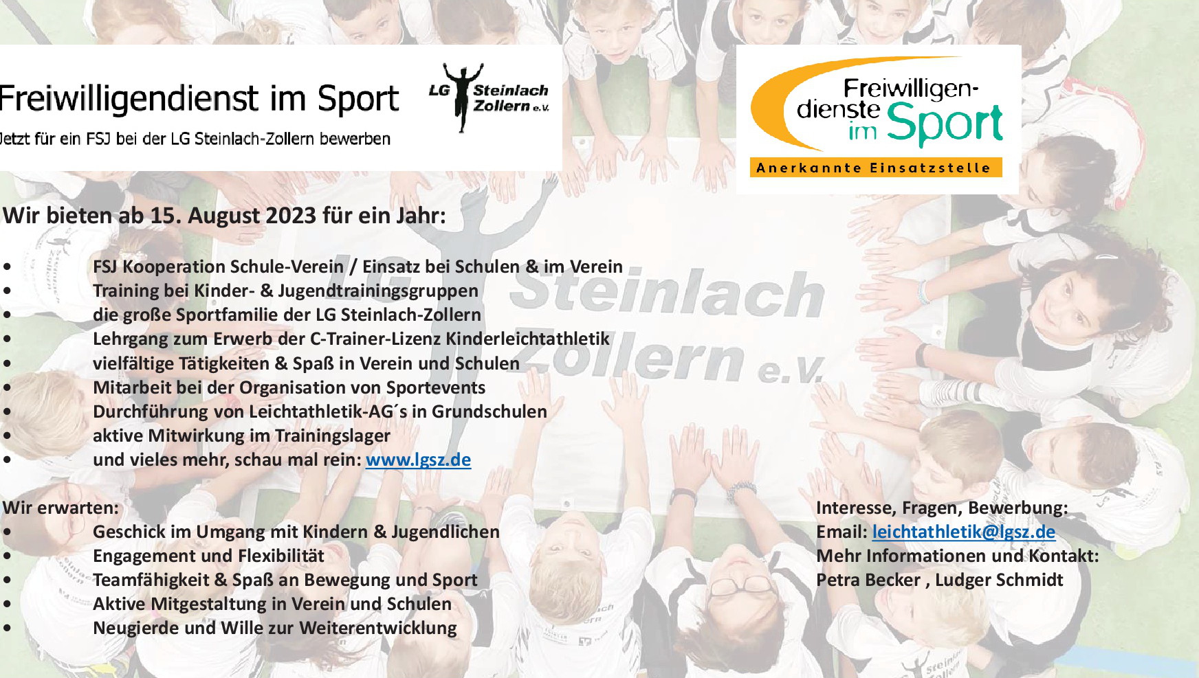 Freiwilliges soziales Jahr - Schule und Sport bei der LG Steinlach-Zollern - dream your dream