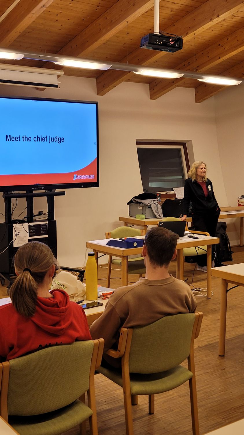 Ziel dieses zweitägigen Seminars ist es jungen Erwachsenen, die Spaß an der Leichtathletik und Interesse an der Tätigkeit als Kampfrichter:in haben, eine interessante Ausbildung zu ermöglichen. In den Gruppenarbeiten beschäftigten sie sich mit den verschiedenen Disziplinen, den Sicherheitsbelehrungen und Regularien der Internationalen Wettkampfregeln (IWR) und der Deutschen Leichtathletik Ordnung (DLO). Darüber hinaus wurde sensibilisiert, wo klimatische Veränderungen die Kampfrichterarbeit bereits heute beeinflussen und wie dem durch Zeitplananpassungen sowie Schattenkonzepte begegnet werden kann. Dazu wurden gemeinsam Ideen generiert, wie die Kampfrichterschaft durch Modifikationen ressourcenschonender agieren kann. Die Arbeit und der Austausch in der Gruppe und das abendliche Rahmenprogramm ermöglichte einen Zusammenhalt der Gruppe, der auf den folgenden Wettkämpfen weitergeführt und gestärkt werden kann.
