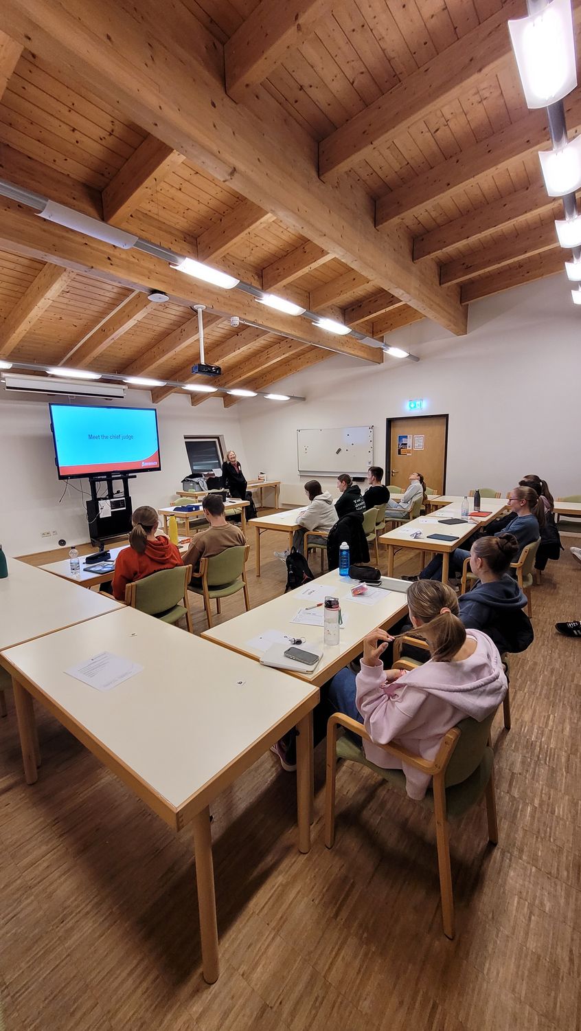 Das Abendprogramm läutete ein Besuch von Ulrike Achatz, Leiterin des Fachausschusses Kampfrichterwesen und damit unsere „Chefin“ der Kampfrichter:innen, ein. Sie berichtete aus ihren Erlebnissen in der Kampfrichterei und gab Raum und Zeit für Fragen aus den Reihen der Teilnehmer:innen. Es war direkt zu erkennen mit welcher Energie, Engagement und Herzblut sie das Kampfrichterwesen lebt und verkörpert. Für die „neuen“ ein inspirierender und motivierender Part.